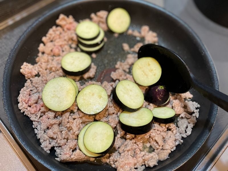 【作り方】豚挽き肉となすの旨塩マメロ二