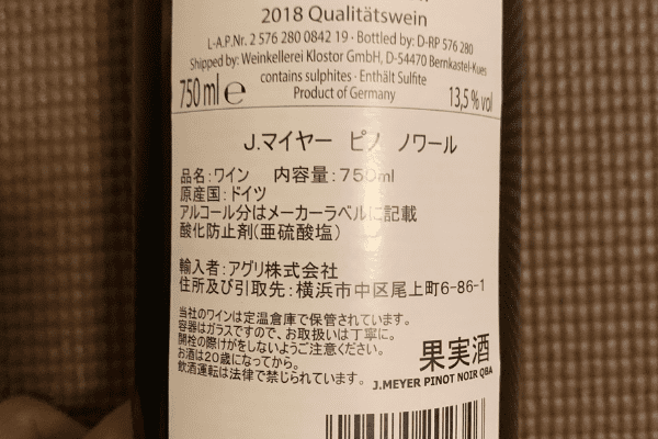 J.マイヤー・ピノ・ノワールのバックラベル