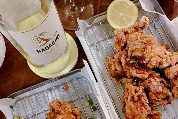 唐揚げの脂をワインで一気に流し込むイメージです。